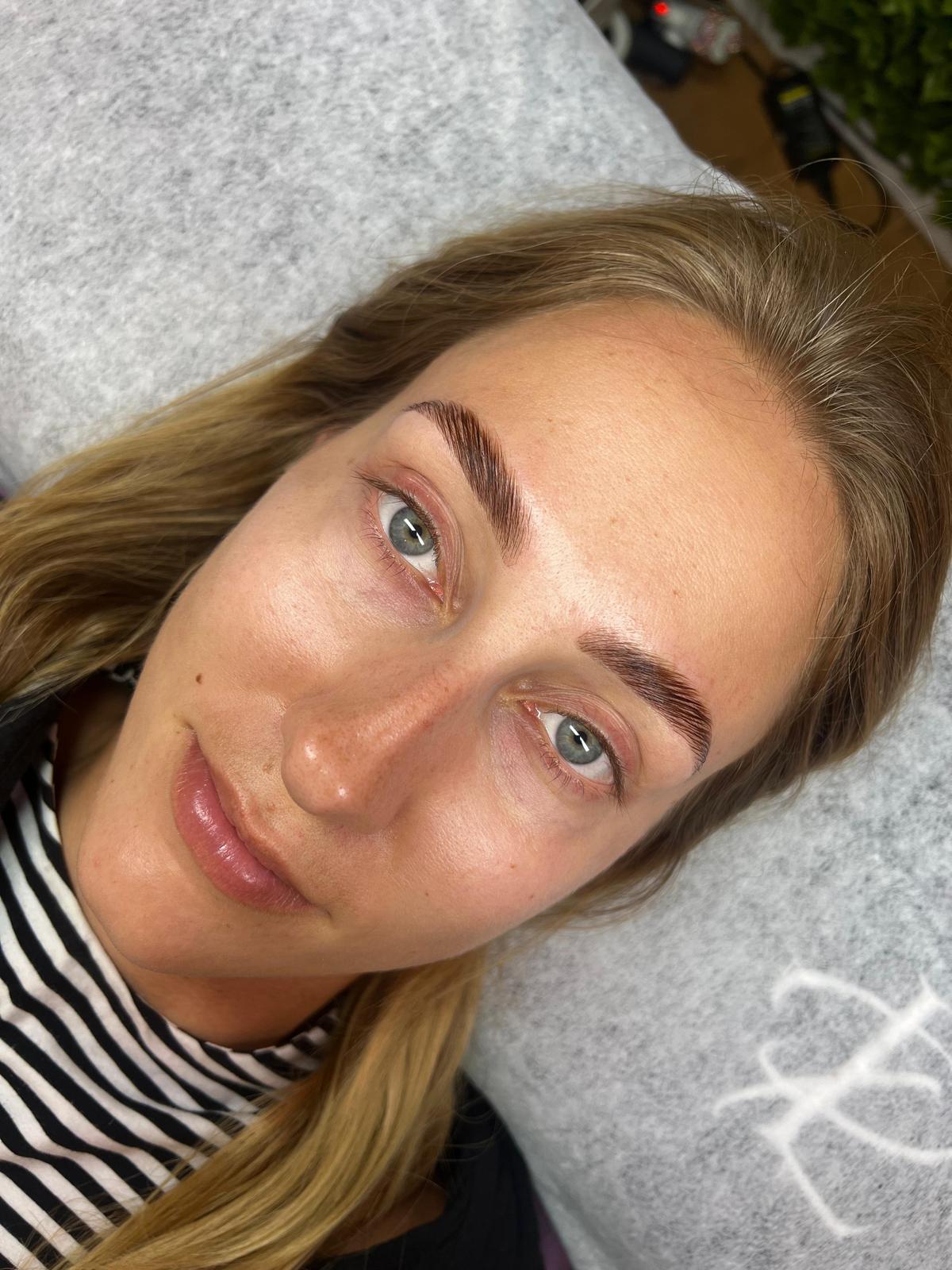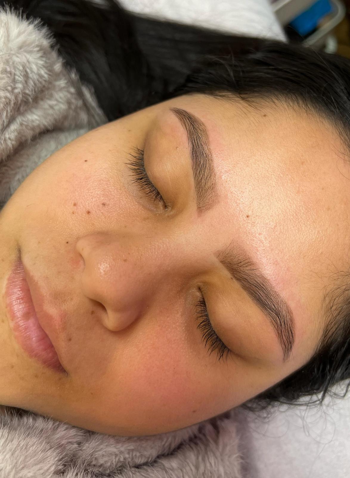 El laminado de cejas mejora la forma, alisa y fija los pelos rebeldes, logrando un acabado más definido y natural que realza tu mirada de forma duradera.